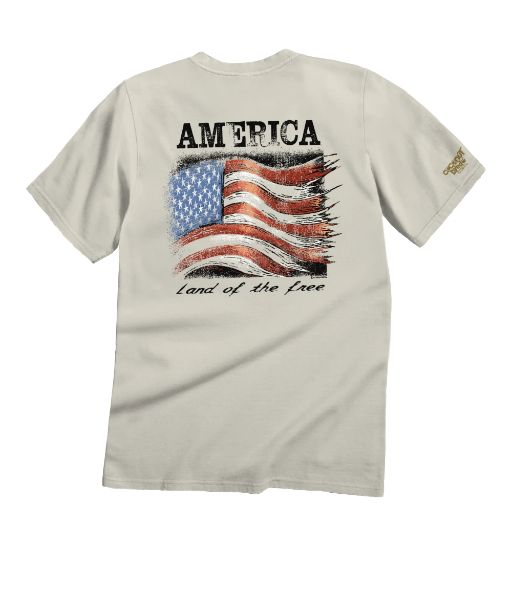 Fly your patriotism with pride and power with this dramatic rendering of the Stars and Stripes. As the motto “Land of the Free” demonstrates, this t-shirt is all about showing off your love for your country and what it represents. Made using our exclusive specialty dyeing process that uses real coconut and featuring 100% combed ring-spun cotton, this t-shirt has 50+ SPF protection to keep you feeling cool, calm and protected all year long. We only use environmentally friendly, water-based inks that penetrate the material’s fiber resulting in more vibrant colors, softer feel and artwork that doesn’t crack or peel. Plus, it is proudly printed in the United States for quality you can see and designs that stand the test of time.