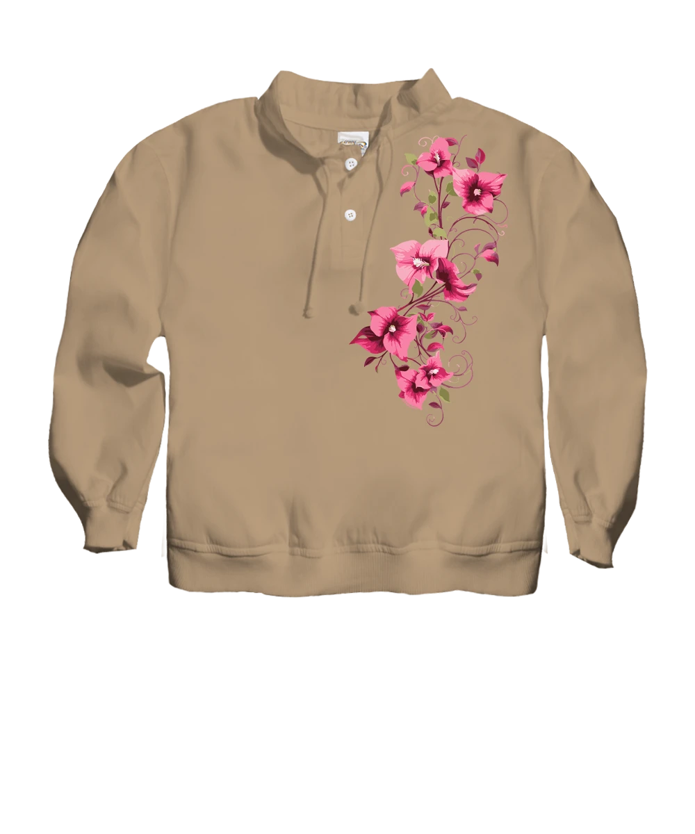 Bougainvillea Vines – Kona Coffee Dyed Long Sleeve Lightweight Pullover