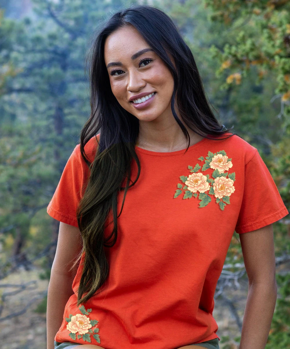 Be the first to review “Chinese Peonies – Paprika Short Sleeve Scoop Neck T-Shirt” Cancel reply