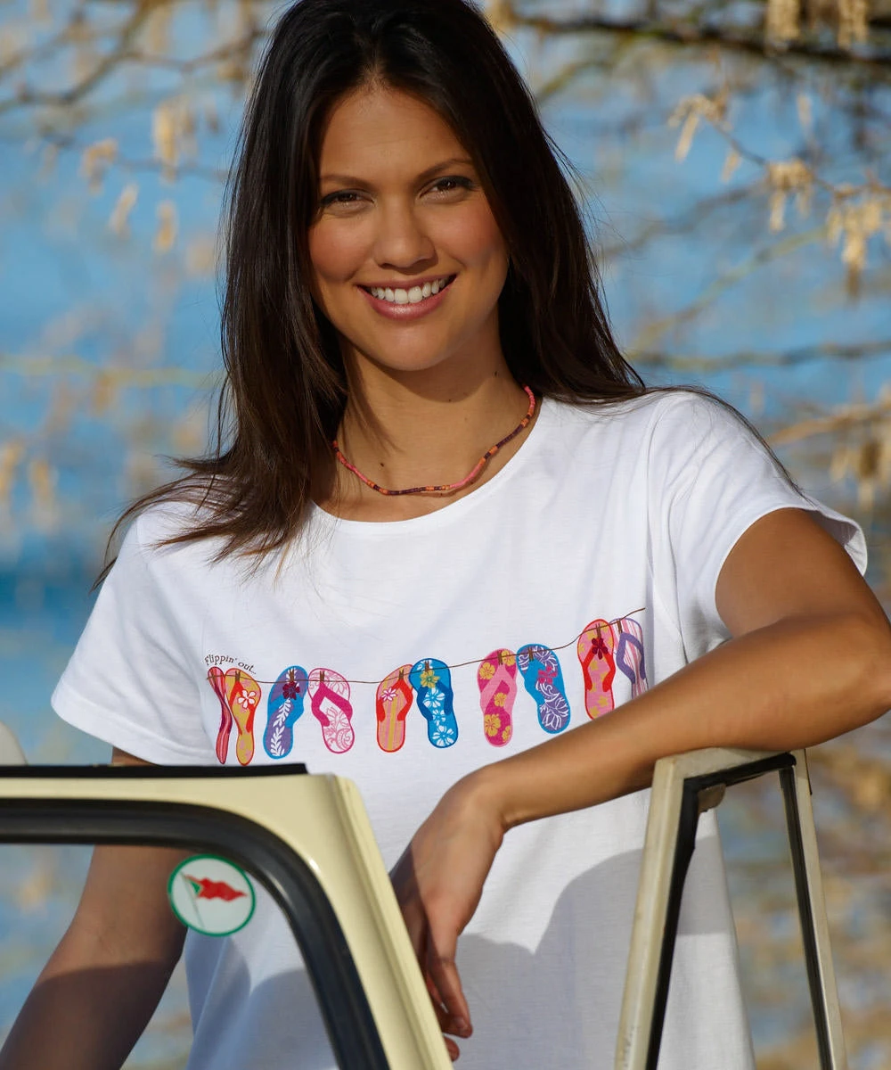 Flippin Out – White Short Sleeve Scoop Neck T-Shirt
