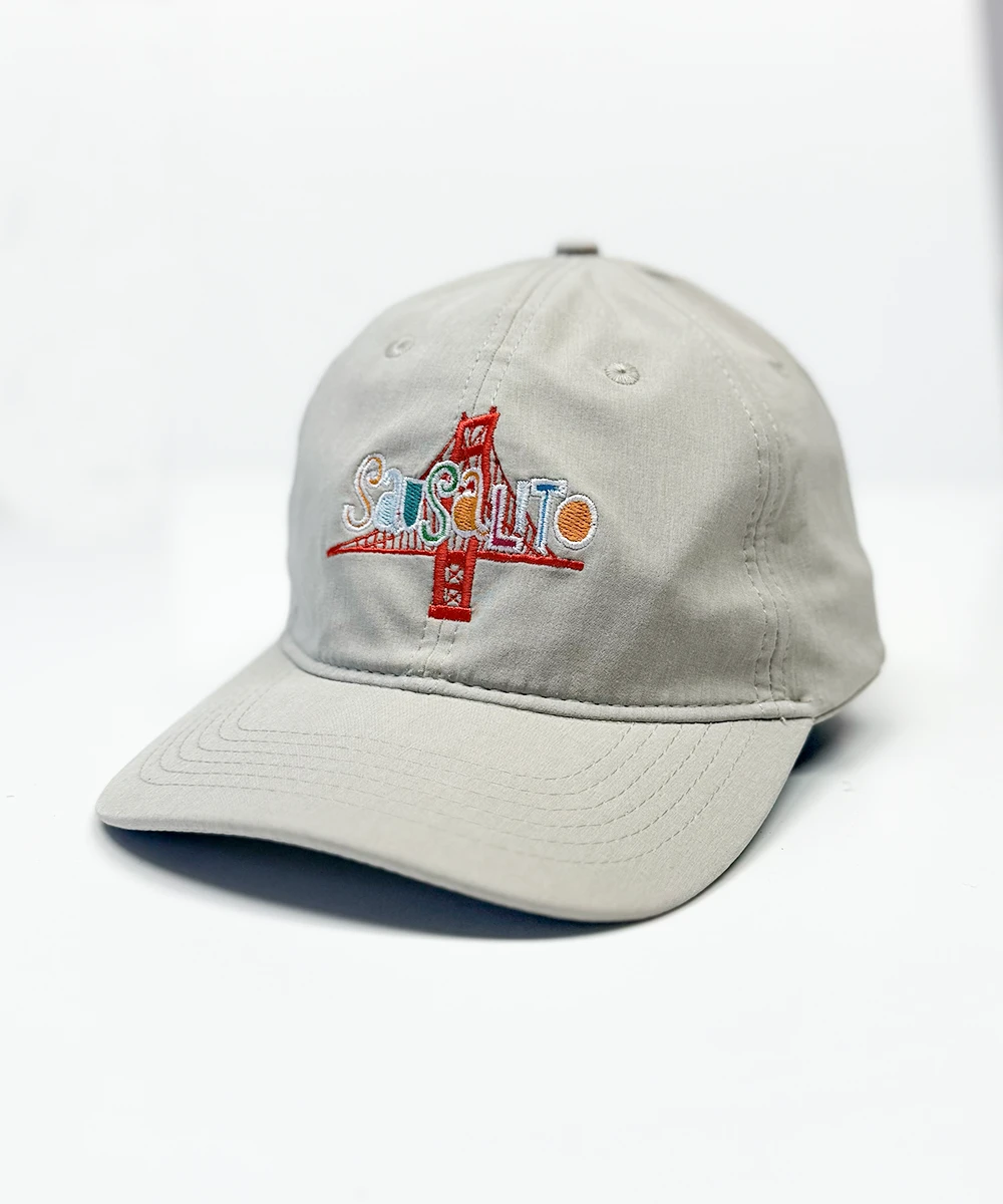 Playful, coastal, and a little artsy – just like Sausalito itself. With the Golden Gate stitched front and center, this cap bridges bold style with bayfront charm. This hat is made with 100% cotton twill fabric and has an interior sweatband to wick away moisture. It is enzyme washed so it’s soft and has a pre-formed plastic bill to look broken-in from the first day you put it on. The adjustable Flip-N-Grip Soft buckle system allows for a great fit. One size fits most.