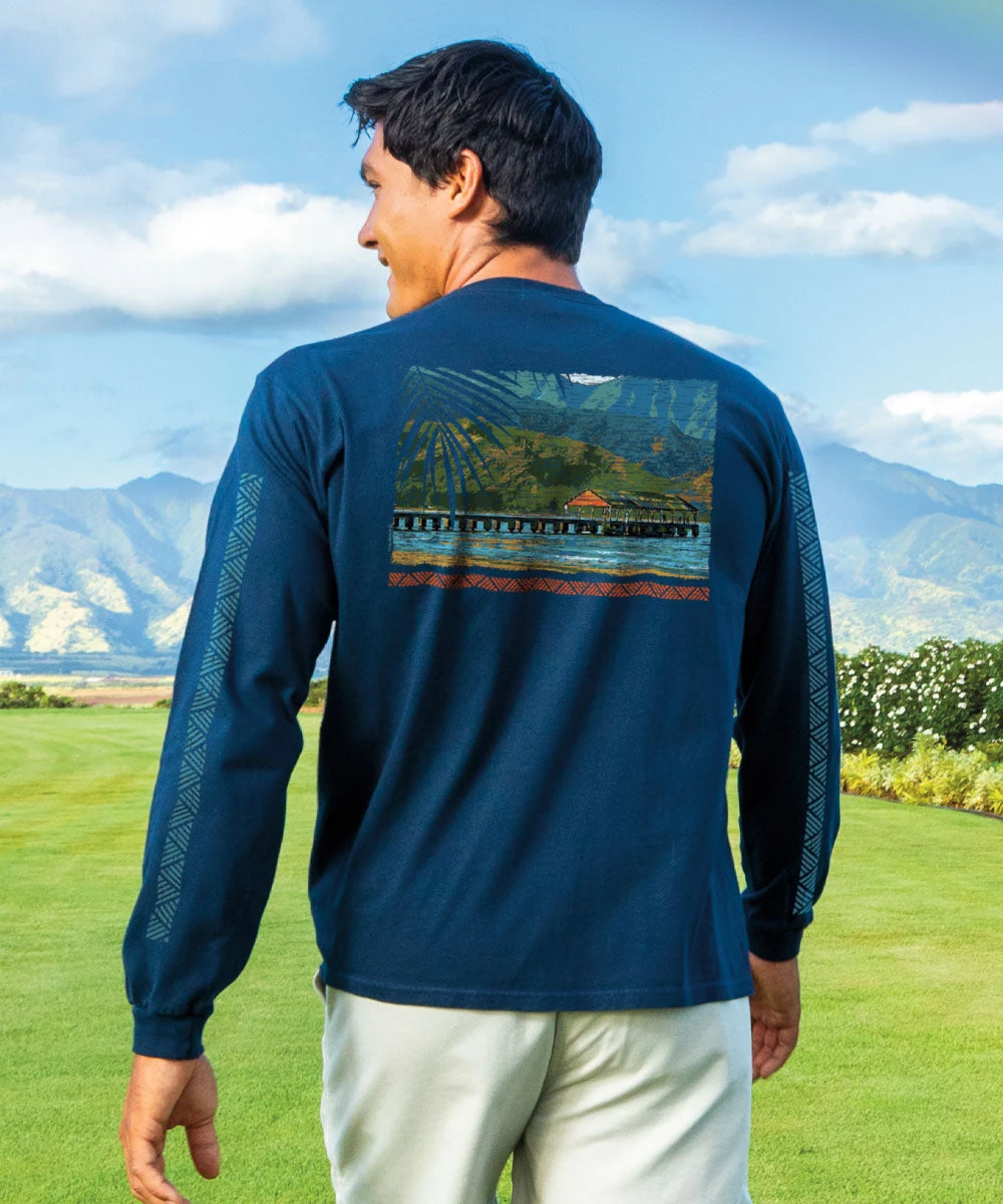 Hanalei Pier – Navy Long Sleeve Crewneck T-Shirt