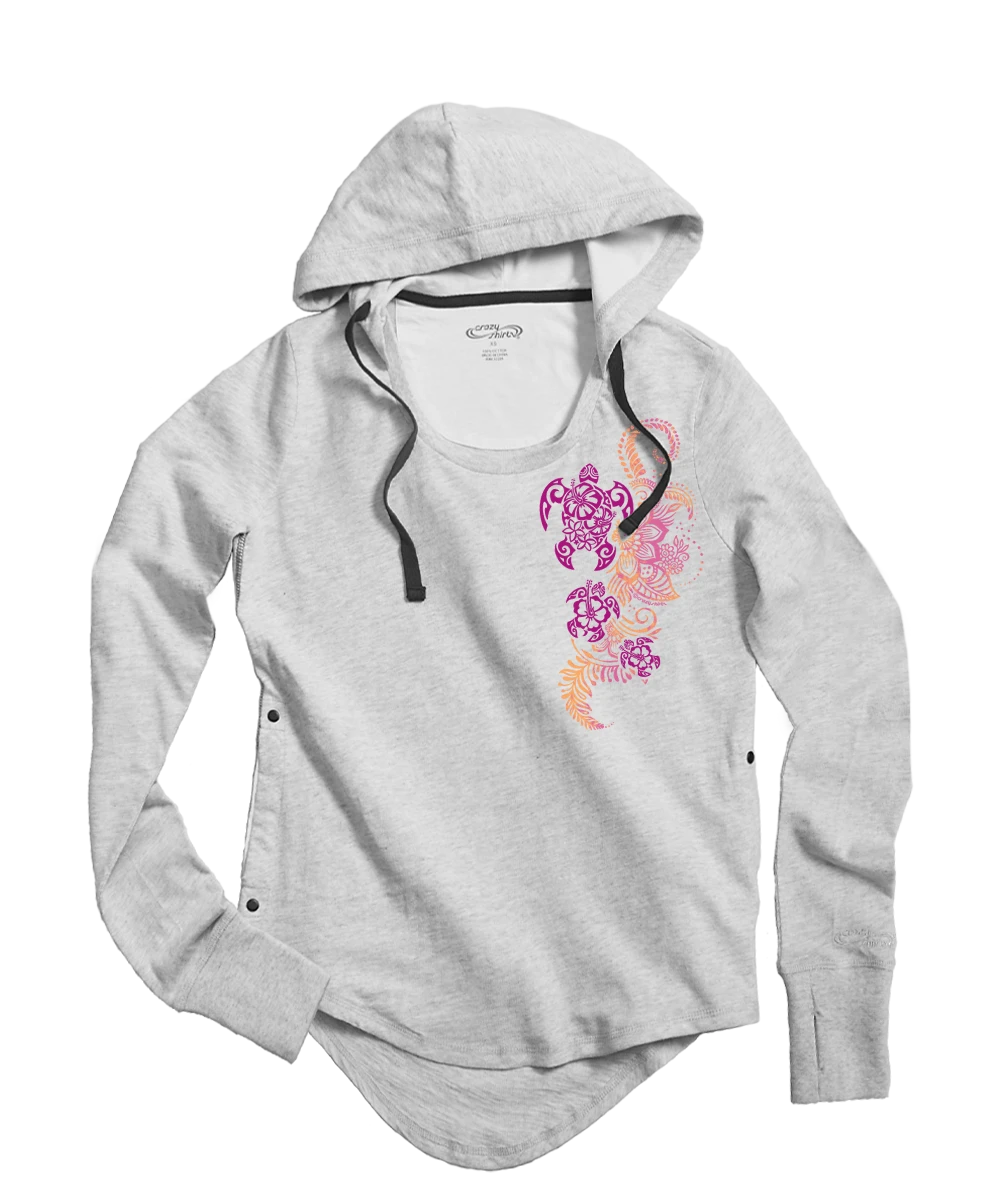 SKU: Y3JHE 9735236878655 Categories: Long Sleeve, Women Tags: 001066, 0180 WHITE GREY HEATHER, 105-Catalog, 1066 C WMN SCOOPNECK LS HOODED T, 220 W LONG SLEEVE, 30 WMN TOP, 54831 - KALANY OMENGKAR, Animal, Apparel, Ocean-Life, Tribal, Turtle, WMN Apparel