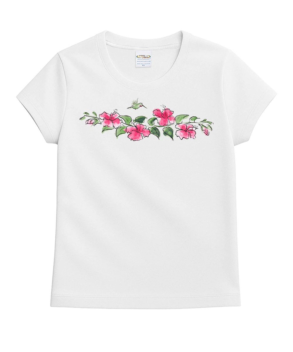 Who loves hibiscus as much as Hawaiians? Hummingbirds love these blooms too so what’s not to love about this sweet and delicate design. This fun, flirty tee remains extremely comfortable thanks to the relaxed fit. It’s also made from 100% cotton that is ring spun then combed to remove impurities for fabric that’s luxuriously soft and lightweight yet incredibly strong. The fine, ribbed tubular, continuous collar and tubular knit construction in the body adds durability. We only use environmentally friendly, water-based inks that penetrate the material’s fiber resulting in more vibrant colors, softer feel and artwork that doesn’t crack or peel. Plus, it is proudly printed in the United States for quality you can see and designs that stand the test of time.