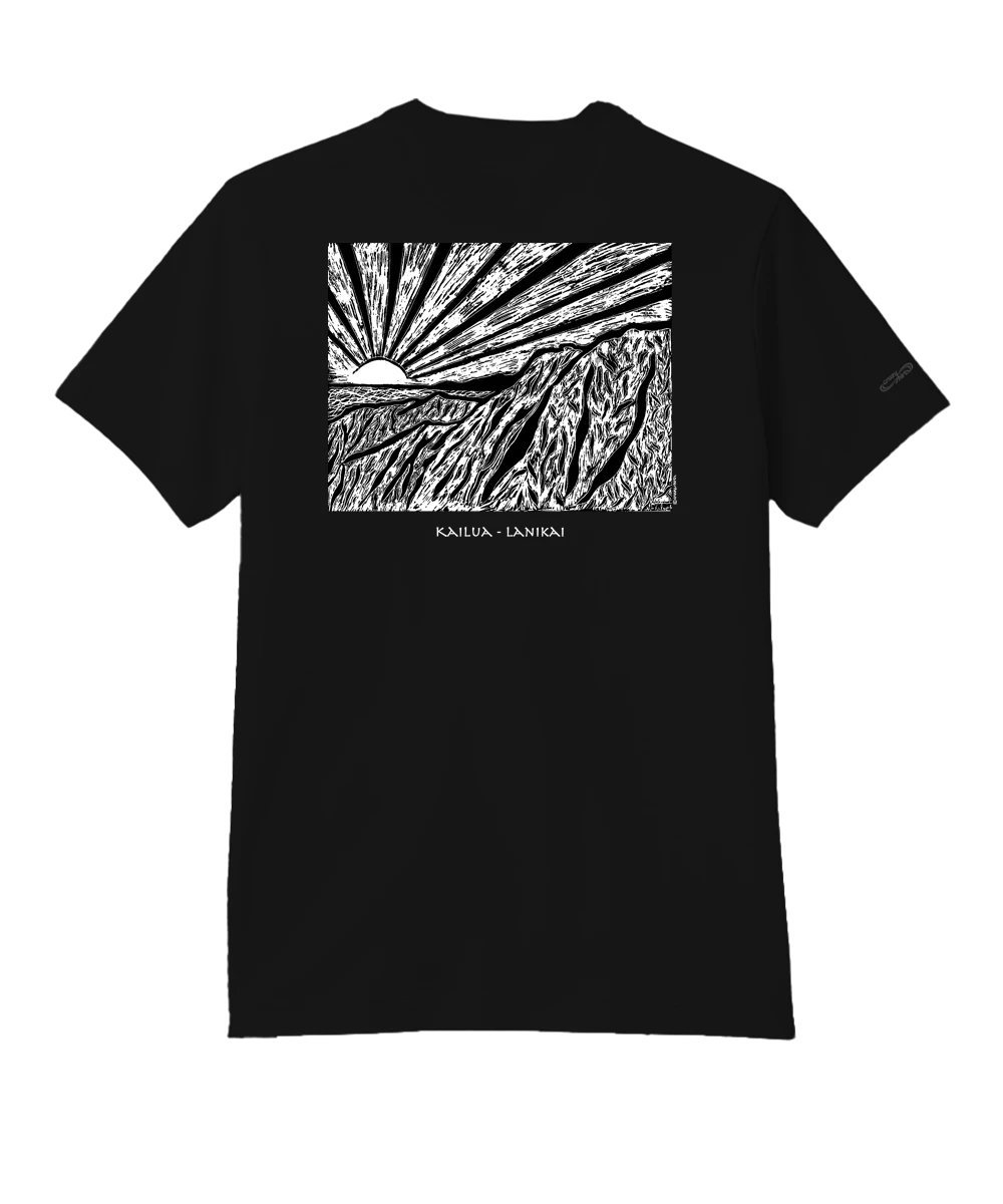 Kailua Lanikai Woodcut – Jet Black Short Sleeve Pima T-Shirt