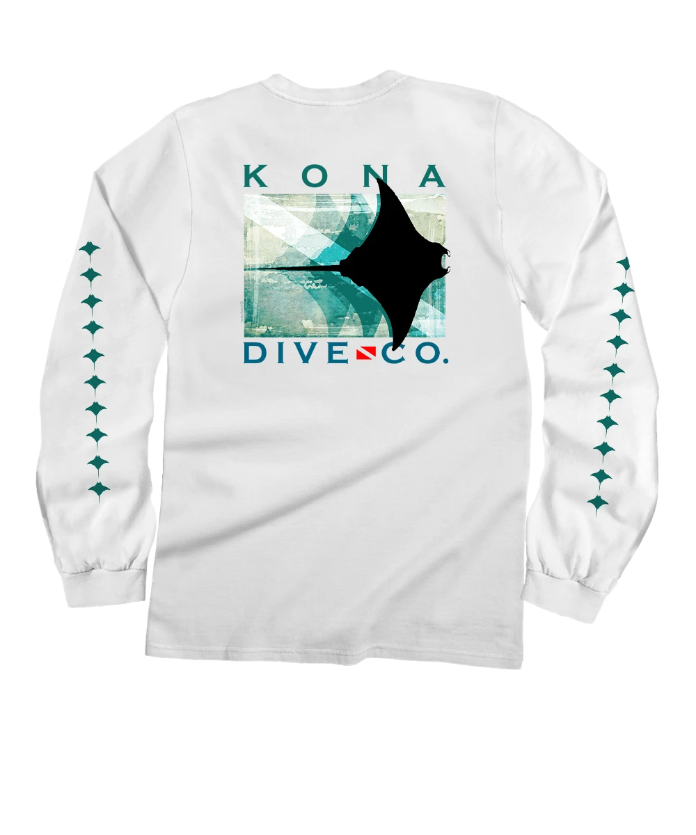 Kona Dive Company Blur – White Long Sleeve Crewneck T-Shirt