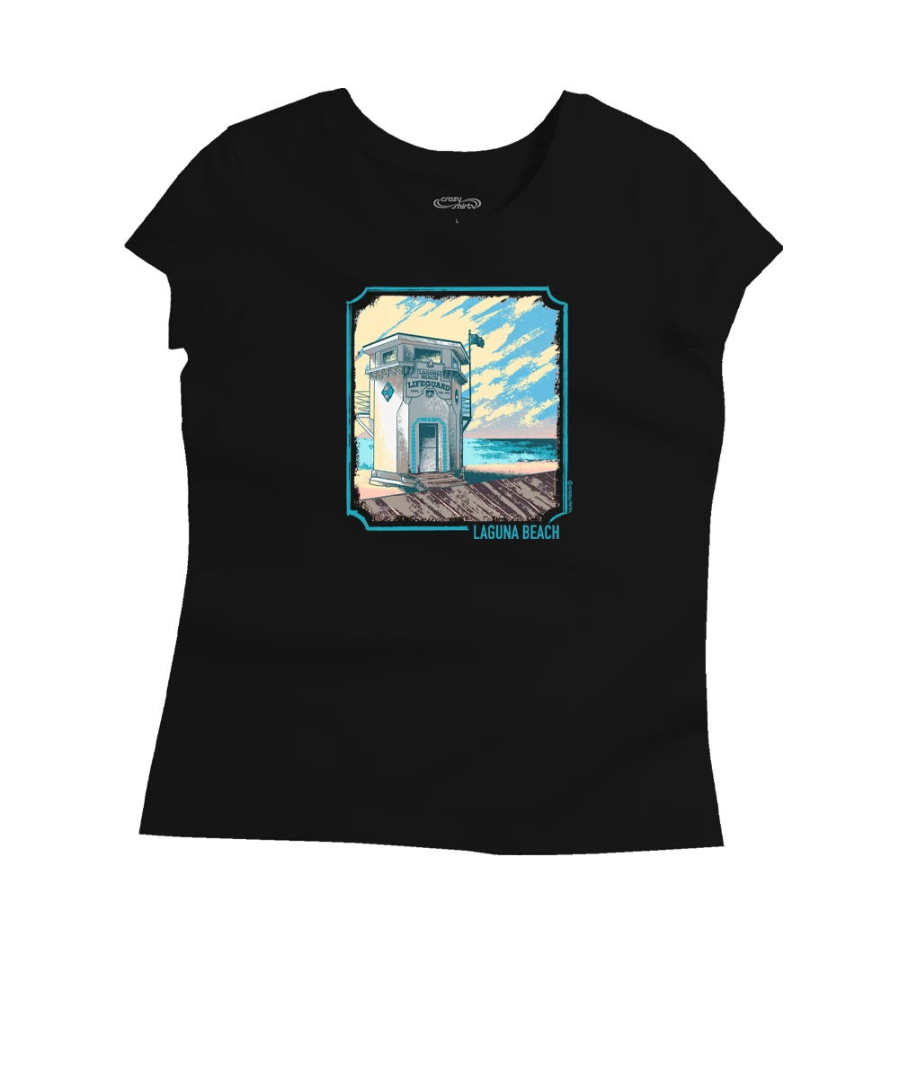 A slice of California coast, frozen in sun-faded charm. With a hand-drawn look and vintage postcard feel, this design captures the timeless vibe of Laguna’s most iconic lifeguard perch. Our luxurious Pima cotton t-shirts are finished with a special wash for ultimate softness and durability and also feature a narrow ribbed neck for feminine appeal. We only use environmentally friendly water-based inks that penetrate the material’s fiber resulting in more vibrant colors, softer feel and artwork that doesn’t crack or peel. Plus, it is proudly printed in the United States for quality you can see and designs that stand the test of time.