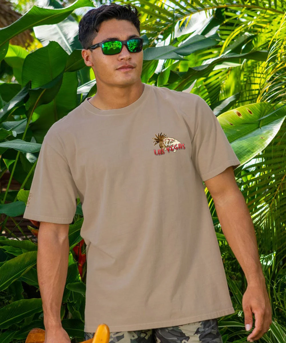 Neon nights, lucky rolls, and a full house of desert dreams – Vegas always plays its cards right. A little glitz, a lot of grit, and all heart. Made using our exclusive kona coffee dying process and featuring 100% combed ring-spun cotton, this t-shirt has 50+ SPF protection to keep you feeling cool, calm and protected all year long. We only use environmentally friendly, water-based inks that penetrate the material’s fiber resulting in more vibrant colors, softer feel and artwork that doesn’t crack or peel. Plus, it is proudly printed in the United States for quality you can see and designs that stand the test of time.