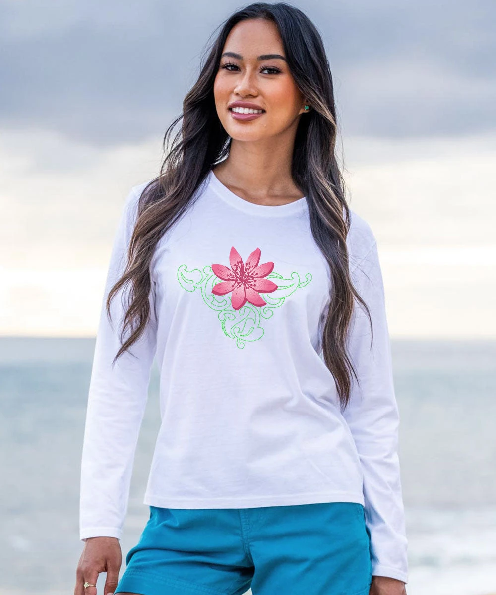 Lily Tattoo – White Long Sleeve Crewneck T-Shirt