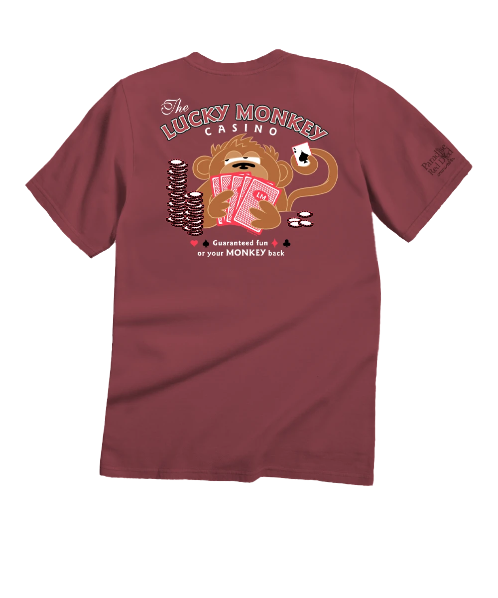 Hit the jackpot of humor with The Lucky Monkey Casino tee – where every hand is full of fun and the only gamble is how many laughs you’ll get. Guaranteed fun… or your monkey back! Made using our exclusive Paradise Red specialty dying process and featuring 100% combed ring-spun cotton, this t-shirt has 50+ SPF protection to keep you feeling cool, calm and protected all year long. We only use environmentally friendly water-based inks that penetrate the material’s fiber resulting in more vibrant colors, softer feel and artwork that doesn’t crack or peel. Plus, it is proudly printed in the United States for quality you can see and designs that stand the test of time.