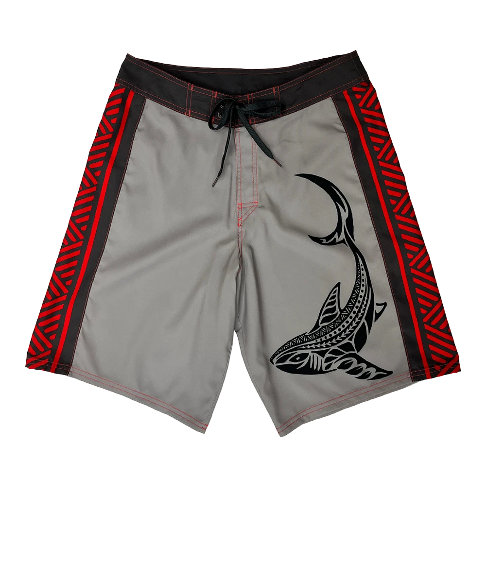 Mano Dive Tribal – Gray/Red Eco HydroPrint Board Shorts