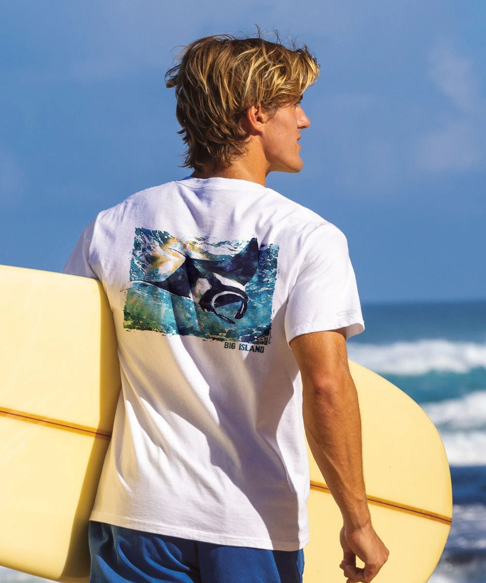 Leave it to our artists to know that watercolors are the perfect medium to capture the sea’s most graceful swimmer. Full of color and light, it goes without saying that you’ll make a big splash in this Big Island tee. Made from 100% cotton that is ring-spun then combed to remove impurities, this fabric is luxuriously soft and lightweight yet incredibly strong. We only use environmentally friendly, water-based inks that penetrate the material’s fiber resulting in more vibrant colors, softer feel and artwork that doesn’t crack or peel. Plus, it is proudly printed in the United States for quality you can see and designs that stand the test of time.