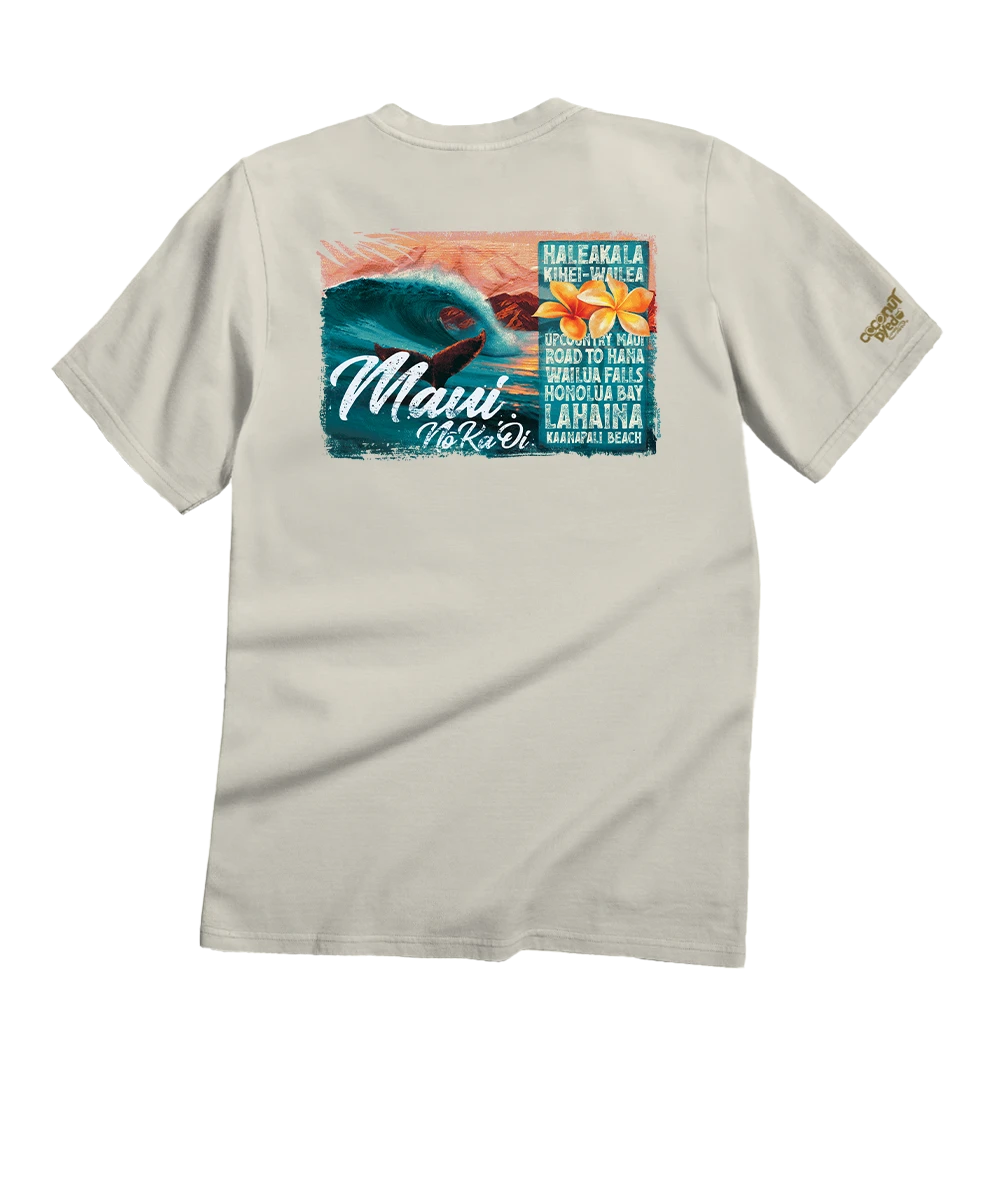 Dive into the true spirit of Maui with a picturesque wave forming a perfect barrel and the graceful silhouette of a whale’s fluke that captures the essence of the island’s oceanic beauty. Imprinted with the mantra Maui No Ka Oi – Maui is the Best – this shirt celebrates the island’s unrivaled charm. Highlighting popular destinations like Haleakala, Kihei-Wailea, Up Country Maui, Road To Hana, Wailua Falls, Honolua Bay, Lahaina, and Kaanapali Beach, it invites you to embark on an adventure, discovering the varied wonders Maui has to offer. Let the Maui life inspire and guide you, for truly, there’s no place like it. Made using our specialty dyeing process, it gets its unique color from real coconuts. It’s also made from 100% cotton that is ring spun then combed to remove impurities for fabric that’s luxuriously soft and lightweight yet incredibly strong. The fine, ribbed tubular, continuous collar and tubular knit construction in the body adds durability. We only use environmentally friendly, water-based inks that penetrate the material’s fiber resulting in more vibrant colors, softer feel and artwork that doesn’t crack or peel. Plus, it is proudly printed in the United States for quality you can see and designs that stand the test of time.