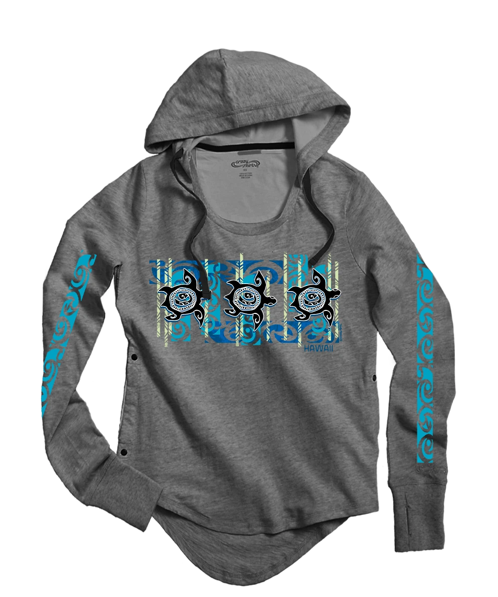 Be the first to review “Nahele Honu – Gray Heather Long Sleeve Harmony Hooded T” Cancel reply