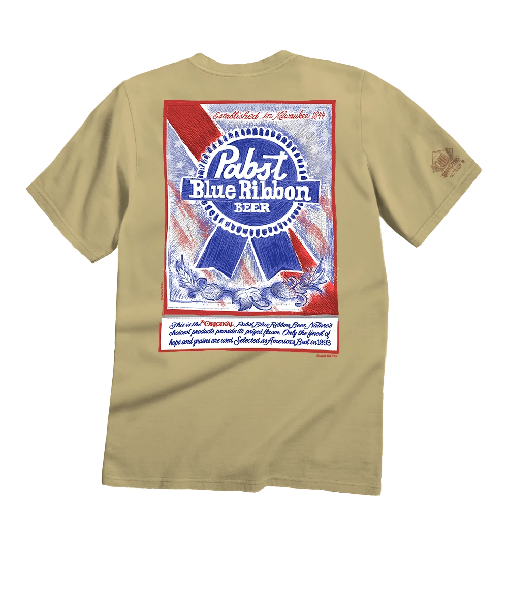 Pabst Blue Ribbon Sketch – Beer Dyed Short Sleeve Crewneck T-Shirt