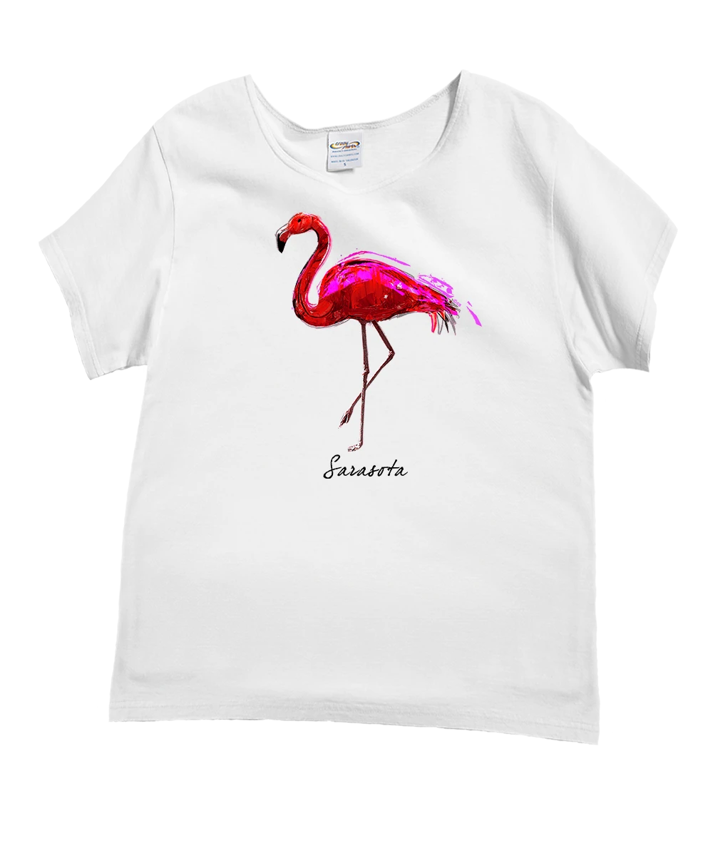 At the Jungle Gardens in Sarasota the pink flamingos roam free. Spread your own wings in this tee that embodies the grace and beauty of these tropical birds. Made from 100% cotton that is ring-spun then combed to make it luxuriously soft, this tee also features a scoop neck and relaxed cut to be both cute and comfortable. We only use environmentally friendly, water-based inks that penetrate the material’s fiber resulting in more vibrant colors, softer feel and artwork that doesn’t crack or peel. Plus, it is proudly printed in the United States for quality you can see and designs that stand the test of time.