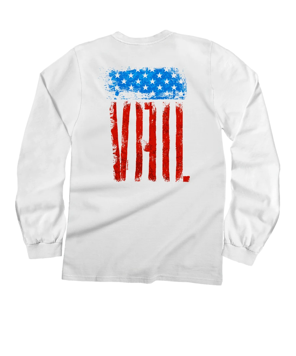 Red White Blue Flag – White Long Sleeve Crewneck T-Shirt