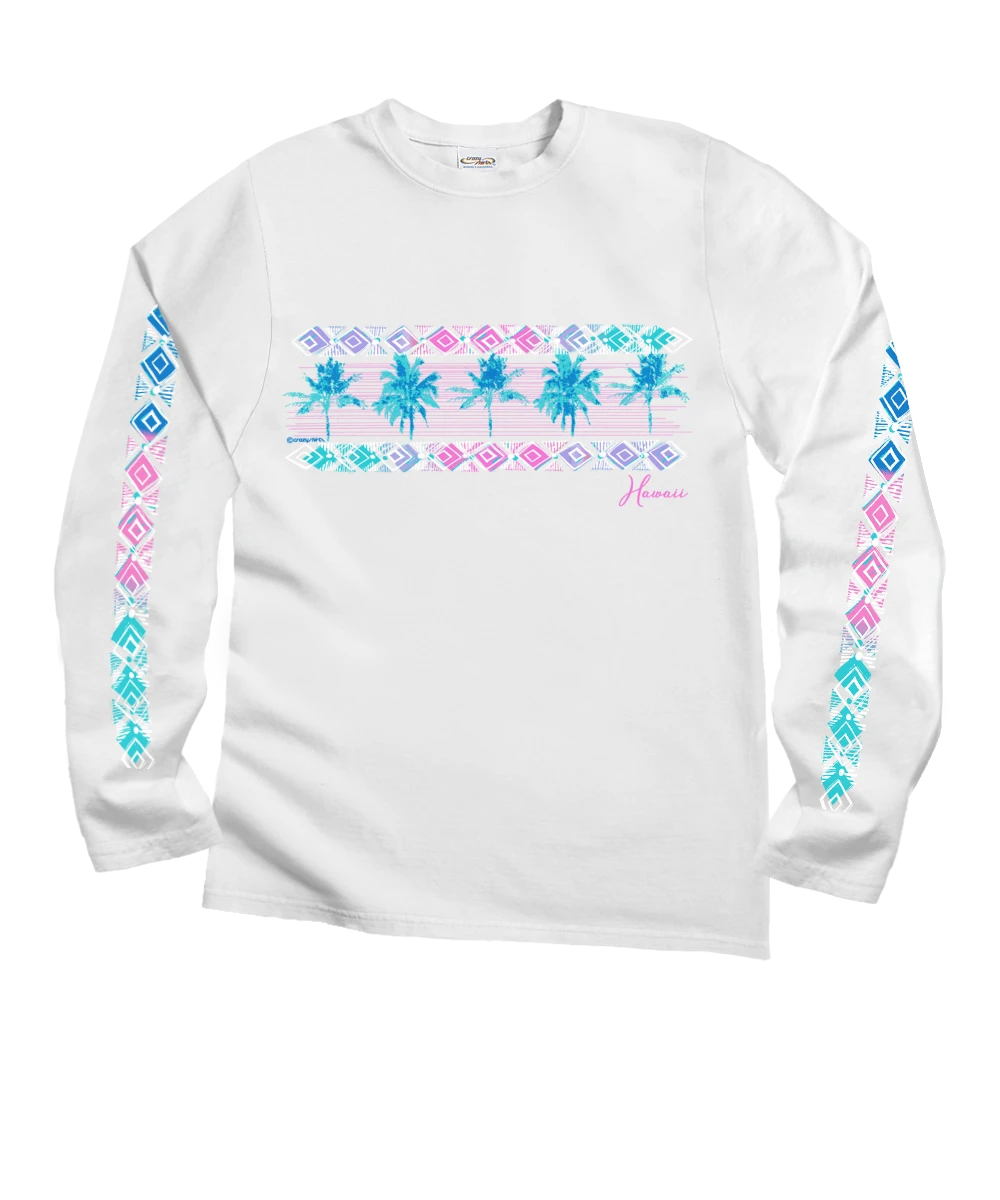 Row Of Palms – White Long Sleeve Crewneck T-Shirt
