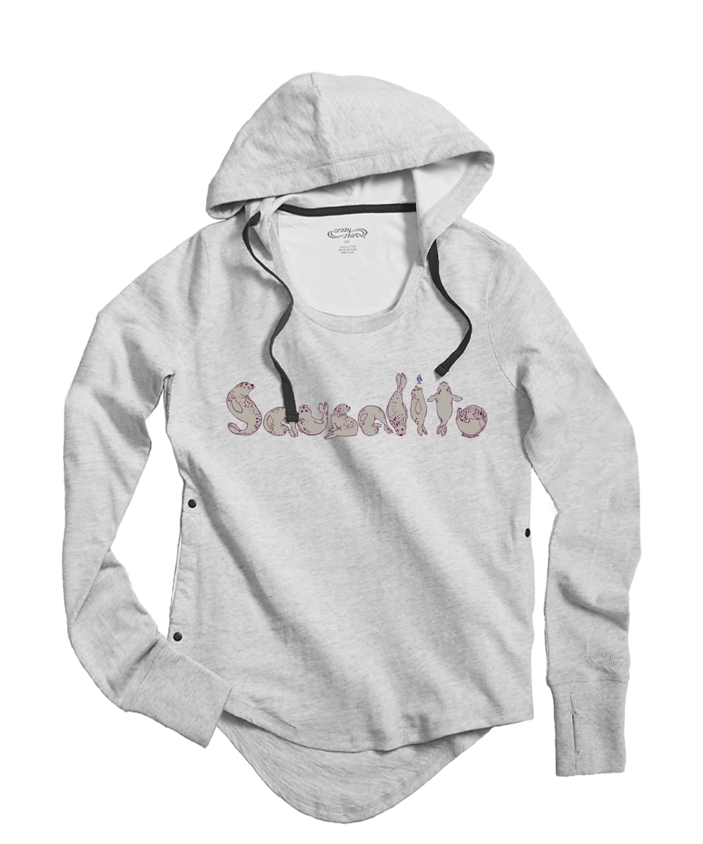 Sausalito Seals Sketch – White Gray Heather Long Sleeve Harmony Hooded T