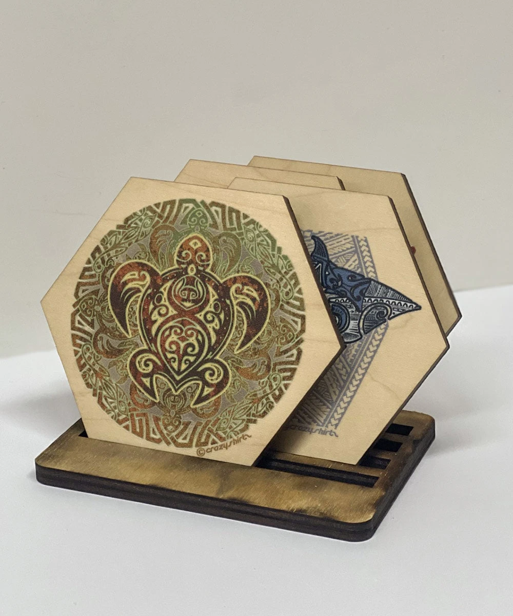 Hawaiians revere the sea and all its creatures. These coasters feature original artwork of some the islands’ most iconic Sealife, bringing to life their connection to Hawaiian culture for islanders both past and present. They’re a great way to show you believe in the Hawaiian proverb, “Malama i ke kai, a Malama ke kai ia oe!”/”Take care of the ocean and the ocean will take care of you”. Made with Maplewood sourced in the USA, each coaster measures 9.3cm (H) x 10.6cm (W). Four coasters per set.