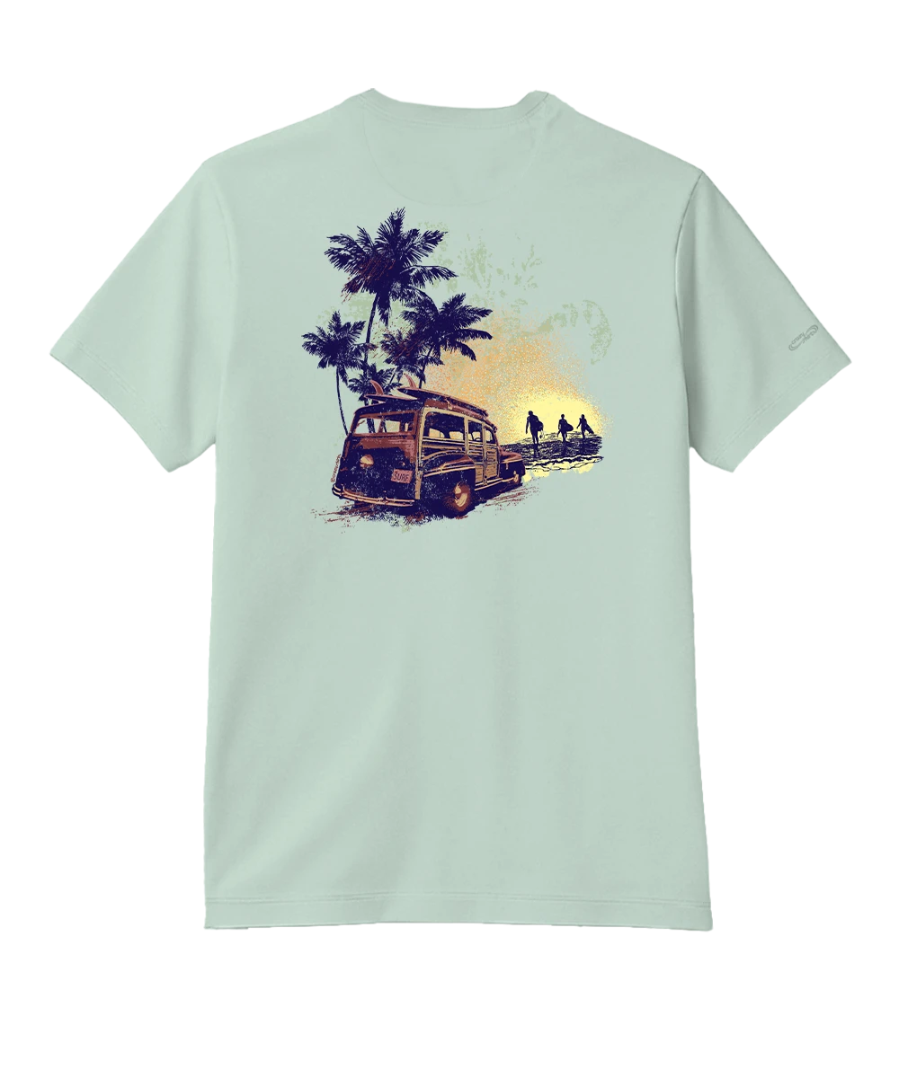 Sunset Surf Woody – Ice Mint Short Sleeve Pima T-Shirt