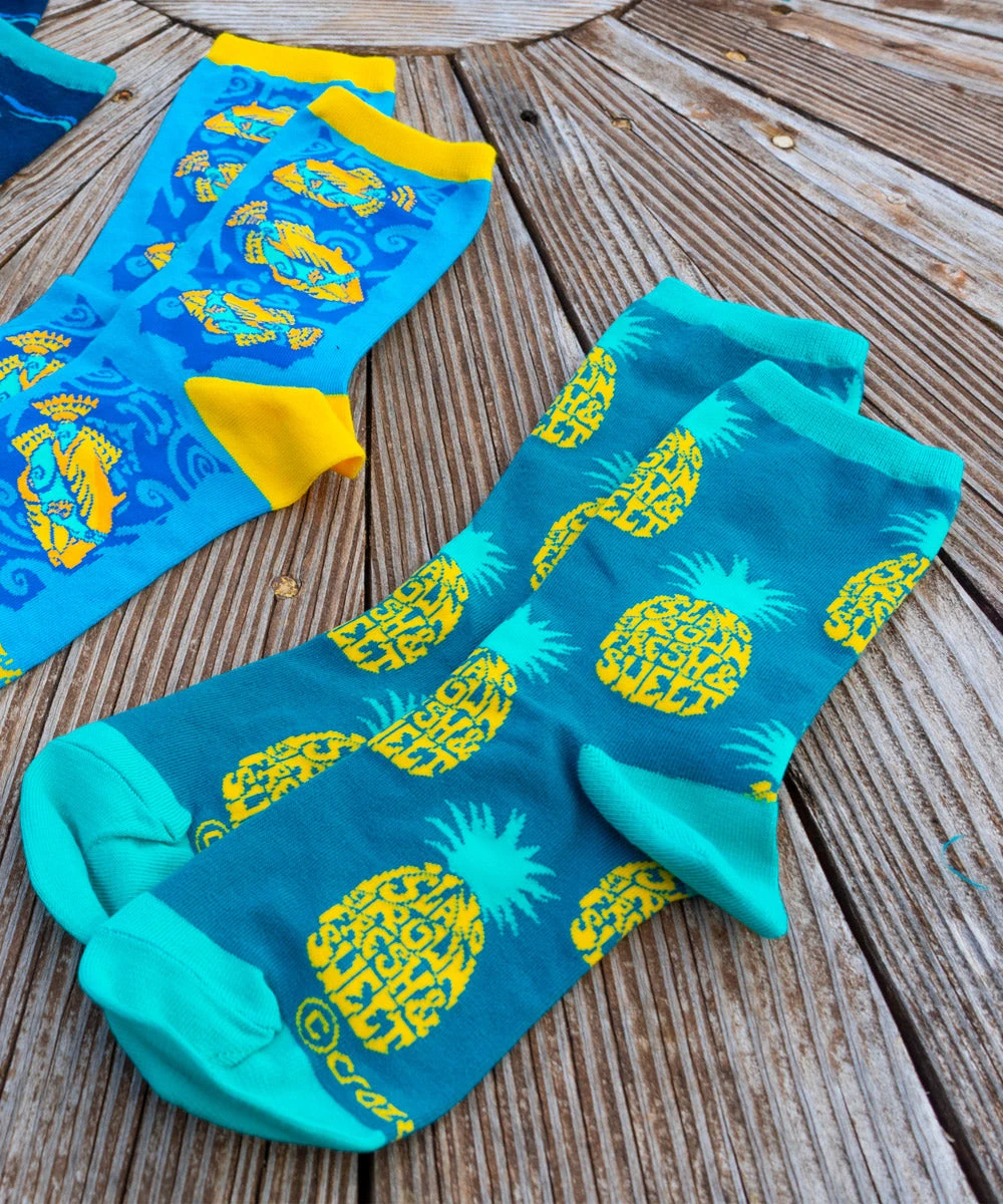 Get playful and pineapple-y with these socks that are perfect to pair with our tropical island paradise. Full of fun and color, these socks bring the Aloha lifestyle to your feet and can be worn with anything. Whether you’re running, hiking or perfecting your golf swing, the self-adjusting welt cuff will keep these socks in place as the day goes on. Treat your feet to the seamless toe closure construction that helps to reduces chafing, keeping you comfortable from Monday to Sunday! We’ve now got you covered from head to toe. Literally!