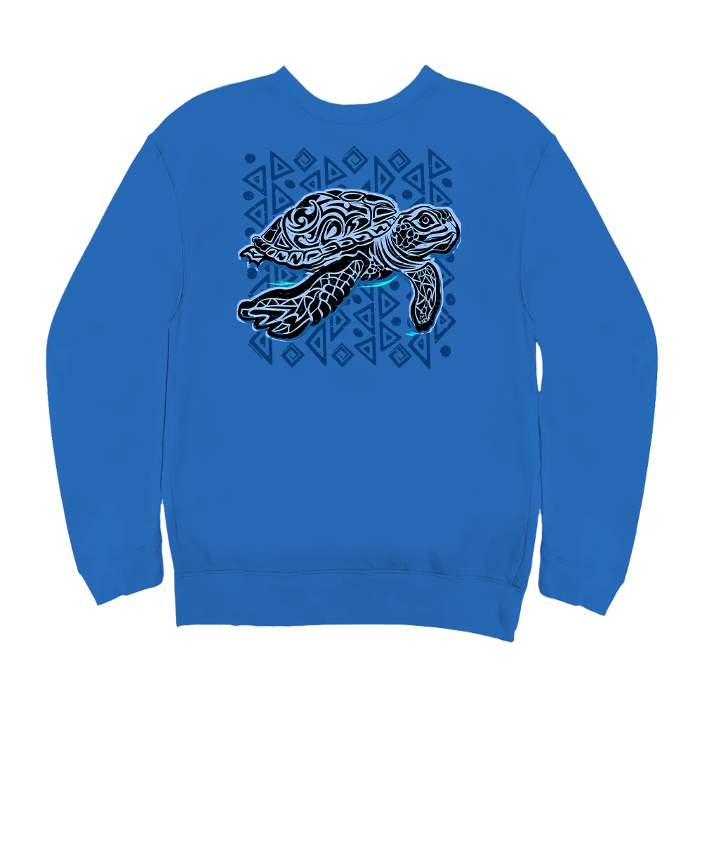 Tribal Sea Turtle – Blue Hawaii Dyed Long Sleeve Sweatshirt