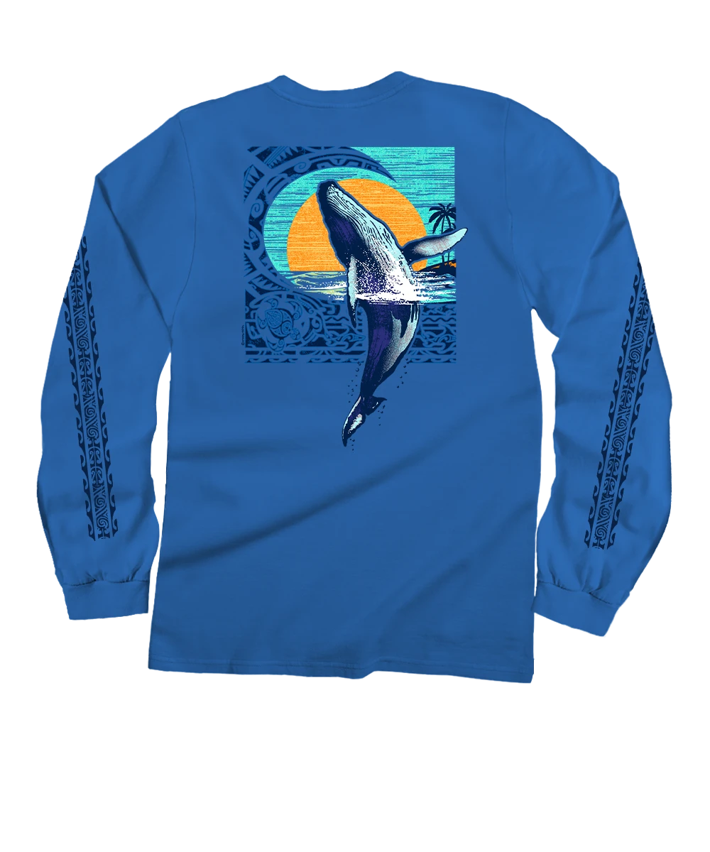 Tribal Whale Breach – Blue Hawaii Dyed Long Sleeve Crewneck T-Shirt