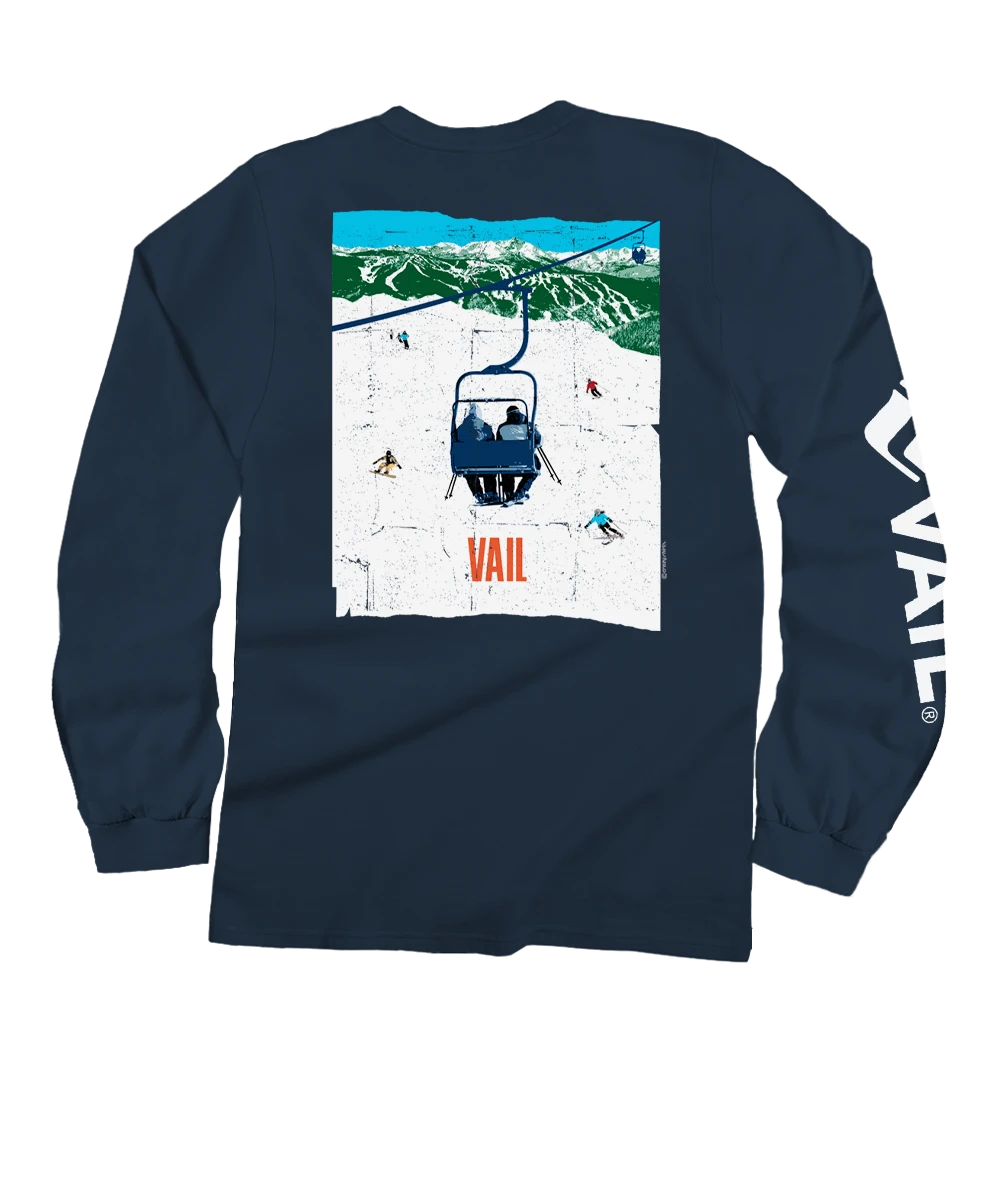 Vail Resort Chairlift – Navy Long Sleeve Crewneck T-Shirt