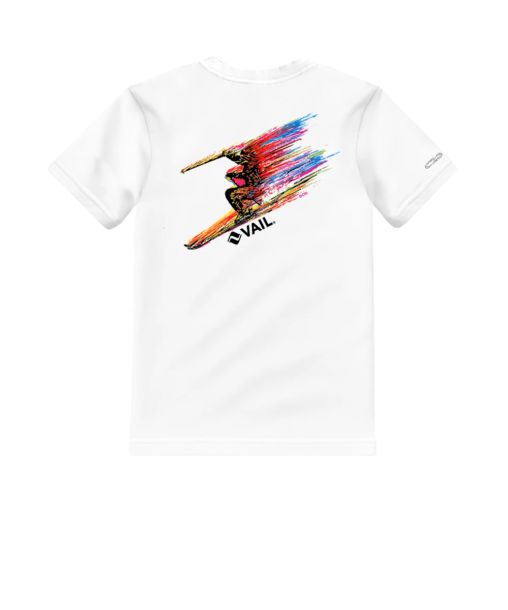 Vail Resort Technicolor Skier – White Short Sleeve Crewneck T-Shirt
