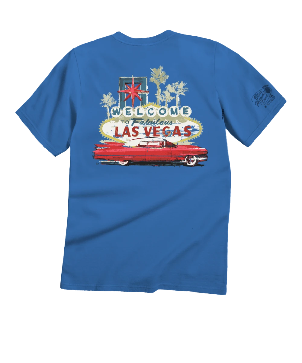Neon lights, desert nights, and a classic cruiser rolling up to the most iconic sign in town. This vintage Vegas moment captures all the glitz, glam, and timeless swagger of the strip’s golden era. Made using our exclusive Blue Hawaii specialty dying process and featuring 100% combed ring-spun cotton, this t-shirt has 50+ SPF protection to keep you feeling cool, calm and protected all year long. We only use environmentally friendly water-based inks that penetrate the material’s fiber resulting in more vibrant colors, softer feel and artwork that doesn’t crack or peel. Plus, it is proudly printed in the United States for quality you can see and designs that stand the test of time.