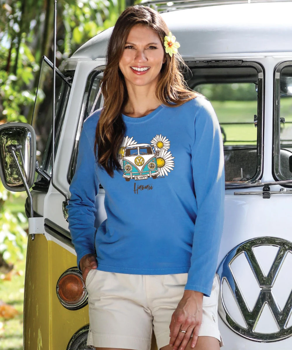 Volkswagen Be Happy – Blue Hawaii Dyed Long Sleeve Crewneck T-Shirt