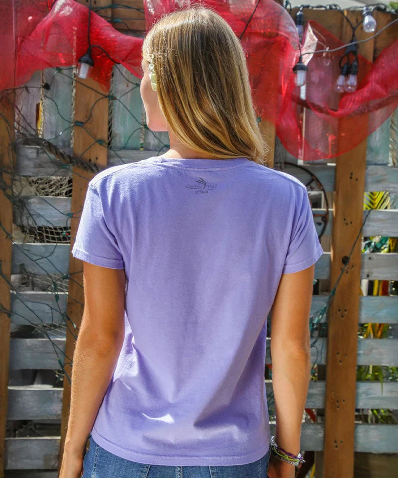Crafted with our exclusive specialty dyeing process using real Lavender, this women’s tee is made from combed ring-spun cotton with tubular knit construction for a soft feel and lasting strength. Printed with environmentally friendly, water-based inks that penetrate the fiber for vibrant colors and a smooth touch, with artwork that won’t crack, fade, or peel. Proudly printed in the USA, it’s built for lasting comfort, quality, and style that stands the test of time.