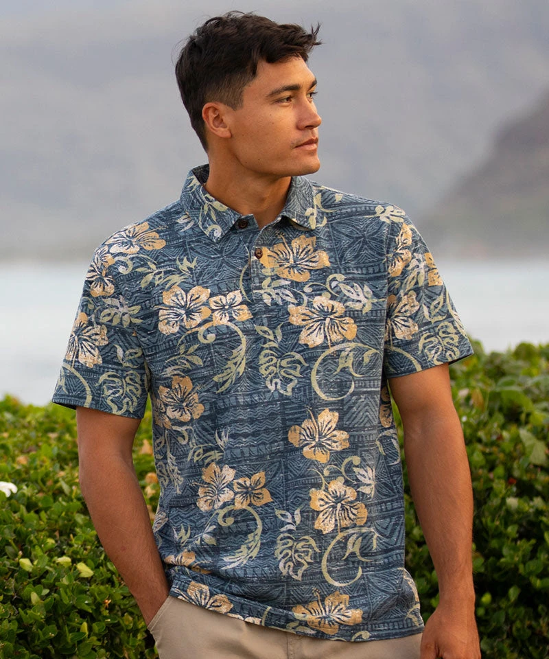 Made with a special reactive print method that keeps colors bright, this Hawaiian Polo combines the heritage of all-over island artwork with the versatility of a modern polo. The pique weave adds texture and style, while the versatile colors make it easy to wear anywhere—from the beach to the boardroom. A fresh take on a casual classic, it’s designed for comfort, durability, and timeless island style.