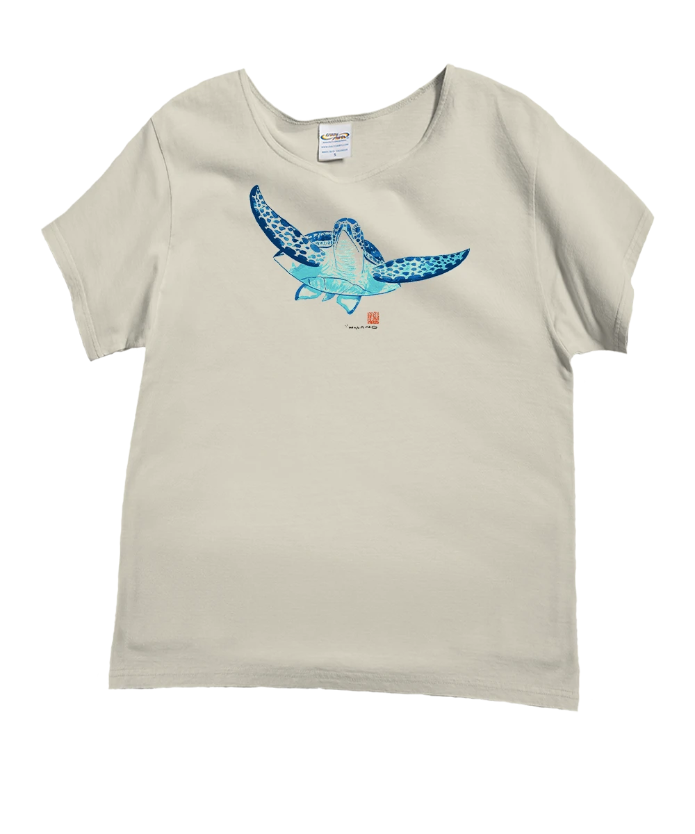 It’s almost impossible to capture the grace and beauty of sea turtles in the water but Wyland somehow is able to do it in this stunning piece of original artwork. Sea turtles are considered protectors of humans so when you wear this shirt you’ll let everyone know we should protecting this special creatures as well. Made from 100% cotton that is ring-spun then combed to make it luxuriously soft, this tee also features a scoop neck and relaxed cut to be both cute and comfortable. The unique color comes from our specialty dying process that uses real coconut. We only use environmentally friendly water-based inks that penetrate the material’s fiber resulting in more vibrant colors, softer feel and artwork that doesn’t crack or peel. Plus, it is proudly printed in the United States for quality you can see and designs that stand the test of time.
